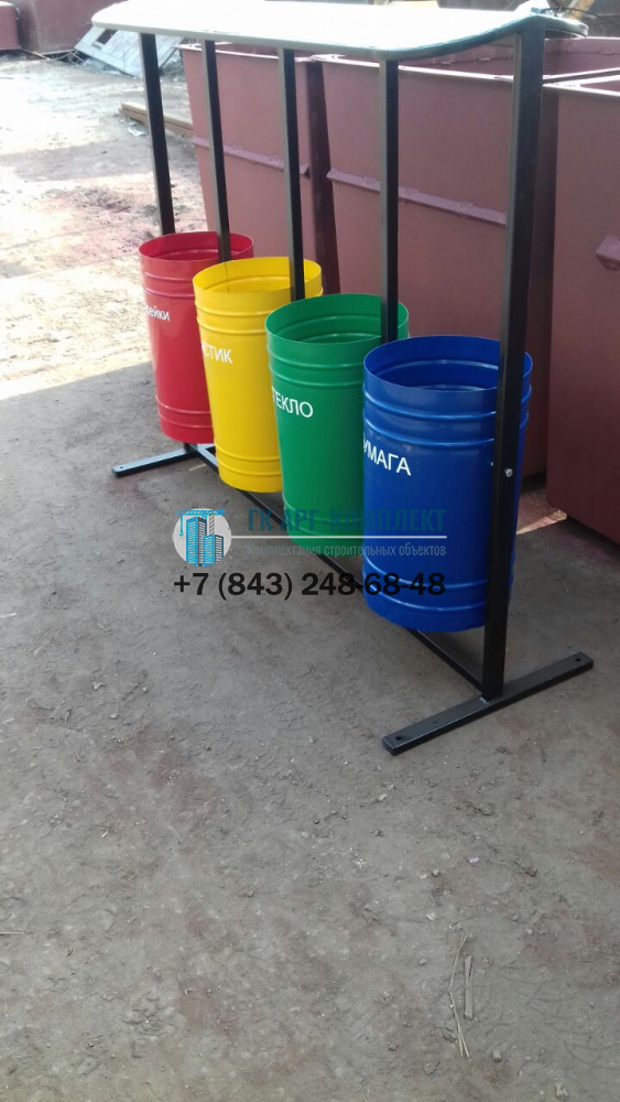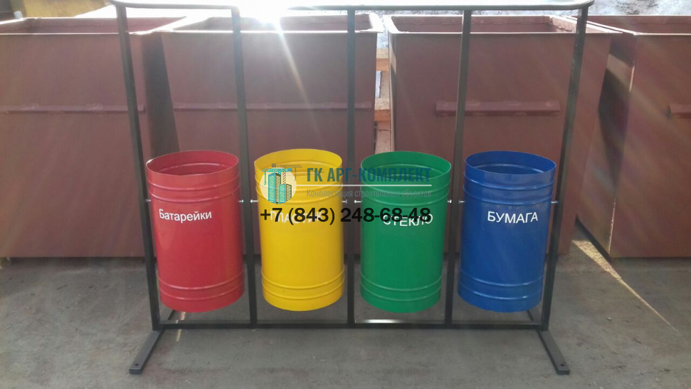Урны для раздельного сбора мусора - система для сортировки мусора конструкционно представляют собой четыре урны круглого сечения, установленные на единой сварную раму.