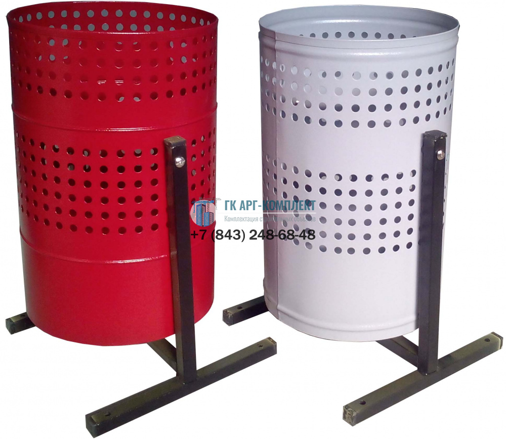 Урна круглая перфорированная, оснащена удобным механизмом опрокидывания.