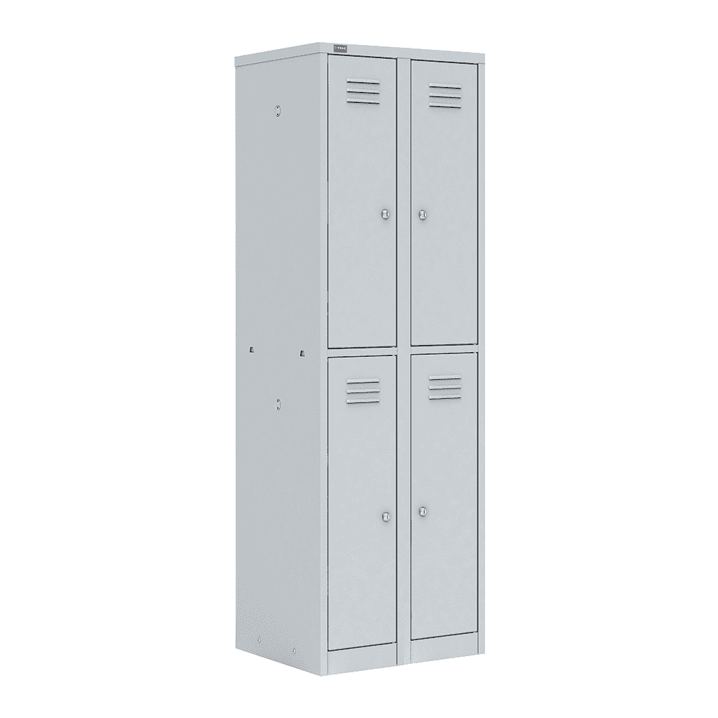 Шкаф разборный металлический двухсекционный с 4-мя отделениями, повышенной жесткости ШРМ-24 предназначен для хранения одежды в раздевалках бассейнов, спортзалов, школ. и т.д.