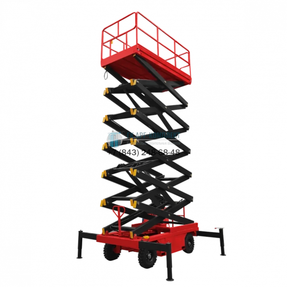 Двухместная платформа с защитными ограждениями грузоподъёмностью 500 кг. Рабочая высота 11 м. Бесшумная гидросистема с взрывозащищённым клапаном.