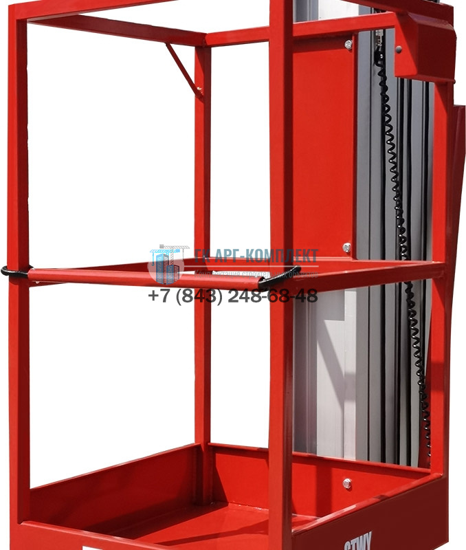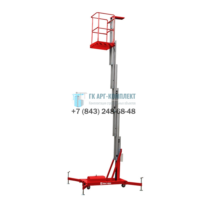 Одномачтовый телескопический подъемник SKYER GTWY6-100 AC/DC — надежное устройство для подъема людей и грузов на высоту до 8 м для проведения монтажных, ремонтных и других работ. Оборудован специальной скобой для зацепа страховочного троса. Грузоподъемность модели составляет 125 кг, что достаточно для подъема одного рабочего и необходимого ему инвентаря. Выдвижная телескопическая мачта из легкого прочного алюминиевого сплава обеспечивает плавный подъем рабочей платформы.
