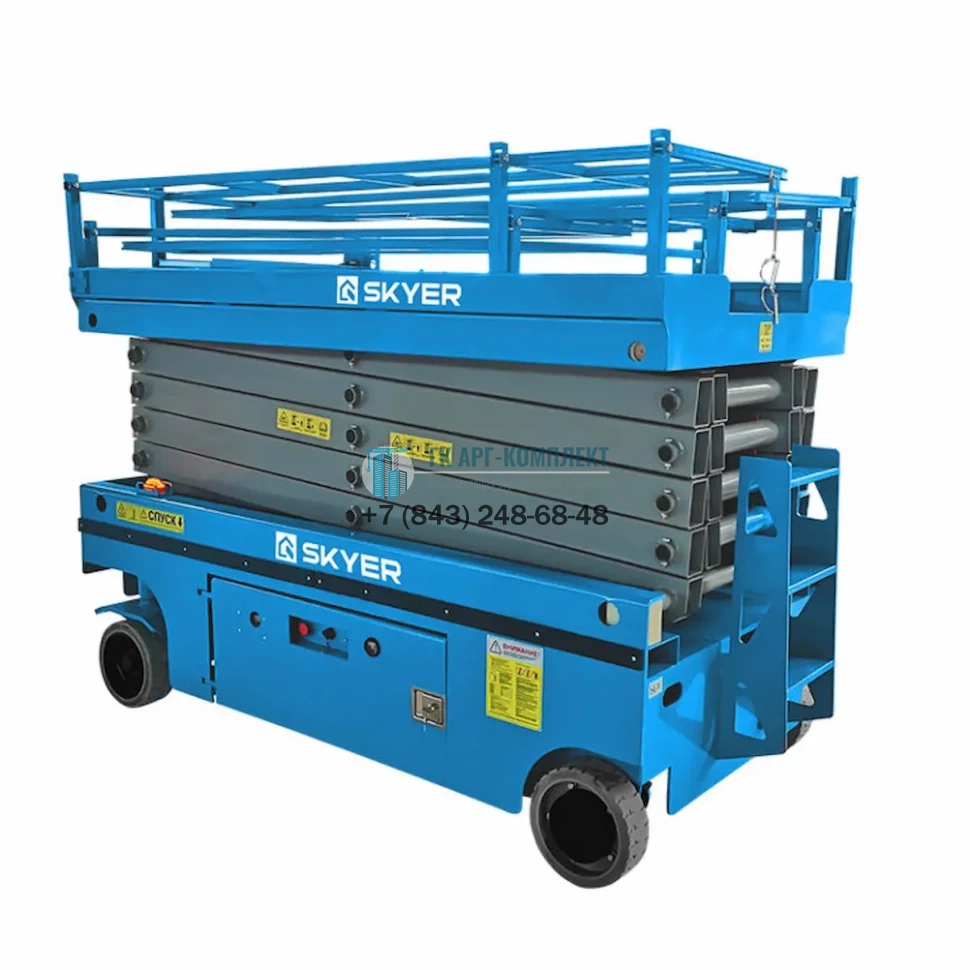 Самоходный ножничный подъемник с выдвижной платформой (узкая база) SKYER PL0624 — ножничный электрический подъемник надежного бренда SKYER. Подходит для монтажных, ремонтных, отделочных, сервисных работ как внутри помещения, так и снаружи. Прост в освоении и обслуживании. Востребован на складах и строительных площадках. Благодаря узкой базе может работать в стесненных условиях.