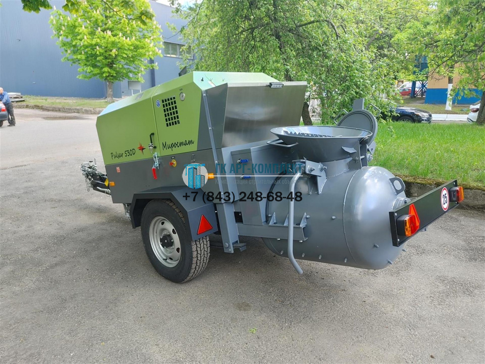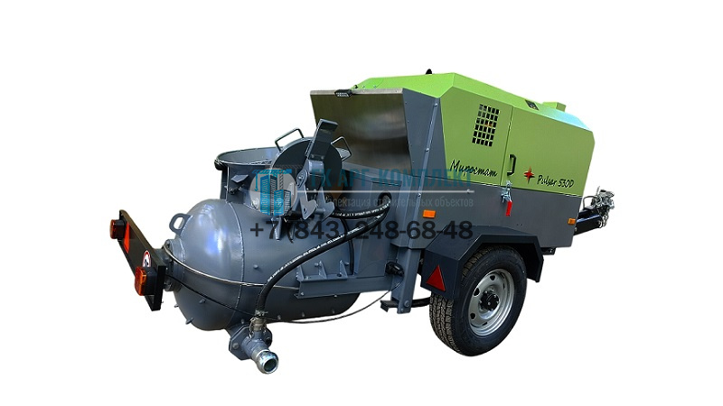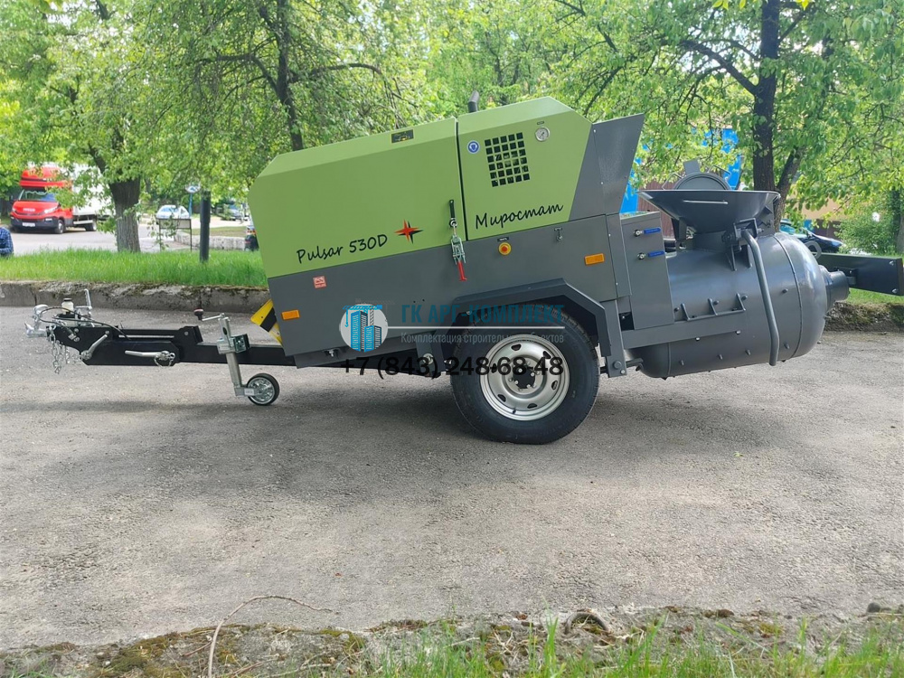 Этот пневмонагнетатель состоит из дизельного компрессора и герметичного бункера-смесителя принудительного действия, смонтированных на одноосном шасси с регулируемым прицепным дышлом. Благодаря автономности и отсутствию необходимости дополнительного электроподключения на стройплощадке, дизельный пневмонагнетатель Pulsar обеспечивает удобство и эффективность в работе.