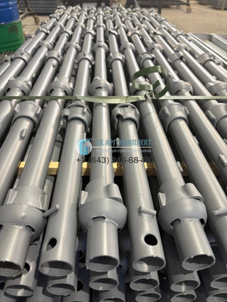 Необходимая высота конструкции достигается путем соединения вертикальных стоек с горизонтальными ригелями через специальные замки-чашки. Эти уникальные замки, при фиксации, гарантируют высокую точность позиционирования и исключительную жесткость всей собранной системы.