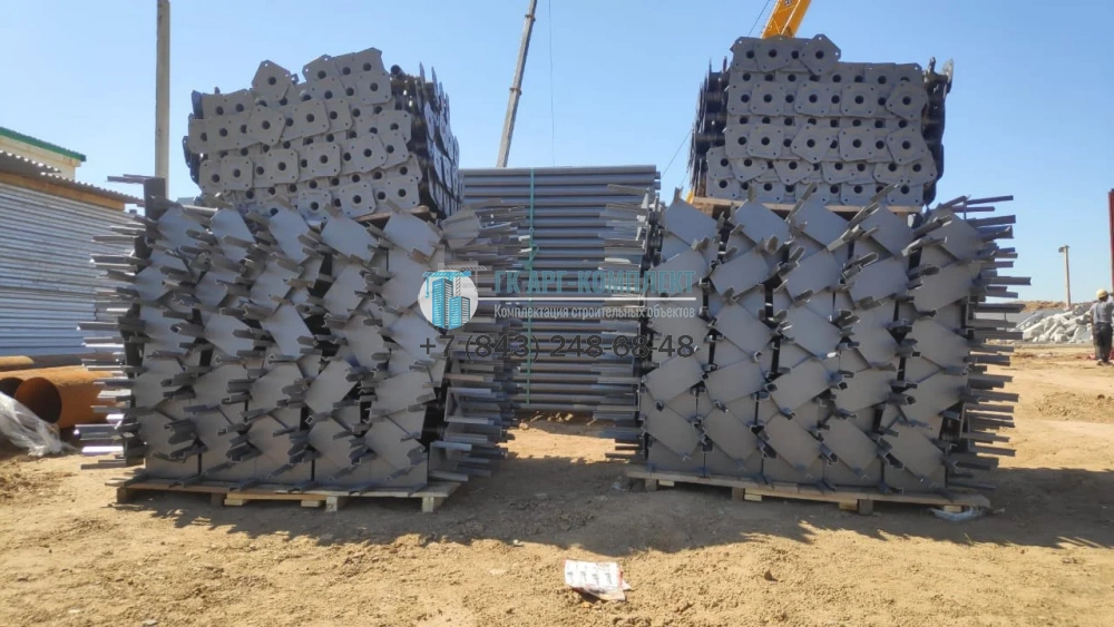 Рамная опалубка включает несущие рамы, которые соединяются диагональными связями через флажковые замки. Соединение рам по вертикали происходит при помощи вставок, а точная регулировка высоты осуществляется регулировочными опорами и унивилками.